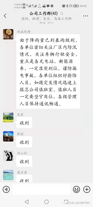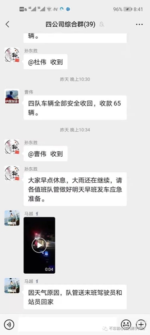 一是信息共享??偣就ㄟ^微信群、車內(nèi)監(jiān)控、GPS定位等手段,及時將線路運行情況、危險路段道路積水情況、場站排水情況等信息進行共享聯(lián)動,以確保及時準確下達工作指令。