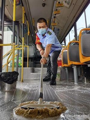 在“嚴(yán)”的制度管理下,五公司也將“情”字體現(xiàn)在工作的各個(gè)環(huán)節(jié)。在五公司開展衛(wèi)生大清掃活動(dòng)中,絕大部分的司機(jī)都是積極響應(yīng),但也有個(gè)別司機(jī)對(duì)突然增加的工作量不理解。針對(duì)此情況,五公司并沒有用制度及考核強(qiáng)制執(zhí)行,而是采取以“情”換情。拿花海公交場(chǎng)站來說,因?yàn)閯倓偼度胧褂?,?6輛車配備一個(gè)保潔人員的情況下,做到車輛衛(wèi)生精益求精只能通過司機(jī)自行進(jìn)行清掃。針對(duì)不理解的司機(jī),花海公交場(chǎng)站負(fù)責(zé)人張波副隊(duì)長(zhǎng)用行動(dòng)感化,他說:“我們的司機(jī)都很可愛,只是個(gè)別司機(jī)對(duì)突然的工作轉(zhuǎn)變不適應(yīng),他們不做那就我來做,時(shí)間長(zhǎng)了他們看在眼里,記在心里,現(xiàn)在也都紛紛加入了車輛衛(wèi)生大清掃活動(dòng)。”