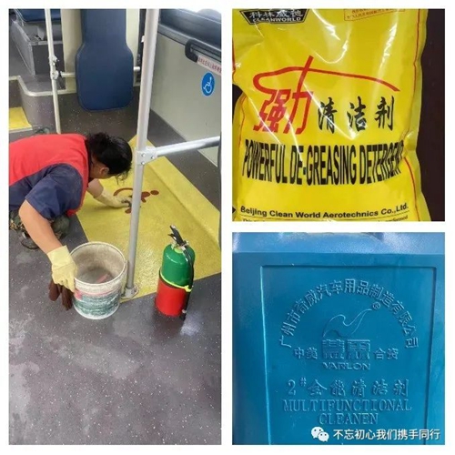 公交車的上車門腳踏板是乘客進入公交車的“第一步”,也是公交車內衛生情況的“第一眼”,但是對于公交車的清洗來說,這“第一步”和“第一眼”卻是最難清理的區域。二公司四隊和三公司二隊在發現傳統清潔劑和洗衣粉的清潔效果不理想后另辟蹊徑,通過網購的方式,購買車輛專用清洗劑。將原液和水進行配比后,對上下車門腳踏板、車廂內部地板、以及地板與座椅的邊緣這些平時難以清理的地方進行浸泡后,再用清潔刷清理,效果非常好,讓公交車顯露原貌,“金蟬脫殼”!車輛專用清洗劑的優點是:1、沒有特殊味道,保證車廂空氣良好;2、清潔人員進行洗刷操作時,沒有腐蝕性,不傷手;3、泡沫少,避免地板出現白繭現象;4、經濟實惠,配比操作簡單。