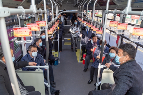 隨后,市人大代表們分別登上三輛新能源公交車,前往下一視察地點。郭彥洪一行詳細了解了我市新能源公交車結構以及公交車運營里程、電池續航里程、安全性等問題;對新能源公交車乘車環境、技術亮點及新功能進行了體驗,指出降低門口踏板、安裝空氣凈化器、USB充電插座等人性化設施,為百姓乘坐公交車提供了方便;360度電子后視鏡、液體安檢儀、防碰撞預警裝置等新功能,為百姓提供了更加安全的乘車環境;純電動新能源公交車相比清潔能源車輛,噪音小、零污染、零排放,節能效果顯著,為我市節能減排和大氣污染防治發揮了積極作用。