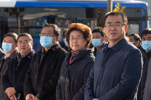 11月24日上午,唐山市人大常委會主任郭彥洪、市政府副市長王海以及60名人大代表到唐山站公交樞紐對今年唐山公交承擔的民心工程進展情況進行調研。唐山市城管執法局四級調研員石中波、唐山公交總經理劉東占參加活動。