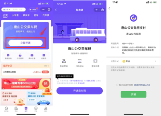 第一種:打開微信,搜索“城市通”小程序,定位到唐山市或者搜索城市列表中的唐山市,選“公交”或“出行”頁面,確認開通乘車碼和免密支付后就可以刷碼出行啦,無需每次輸入支付密碼,方便快捷。