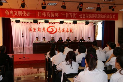 為推進唐山市精神文明建設,培育文明禮讓和諧之風,不斷提升公交服務質量,由唐山市精神文明建設委員會辦公室、市城管局、市交通運輸局、唐山廣播電視臺、市公共交通總公司、同偉商貿有限公司聯合舉辦的“爭當文明使者—同偉商貿杯·十佳百優公交司乘評選”活動于9月18日正式拉開帷幕。市委宣傳部副部長、市文明辦主任李麗,市委宣傳部副部長、唐山廣播電視臺臺長王力,市城管局副調研員張志棟,市交通運輸局城客處處長楊文強,總公司總經理趙俊良、黨委書記夏保良和部分班子成員,同偉商貿有限公司副總經理盧志敏出席啟動儀式,司乘代表、乘客代表和新聞媒體代表共計300余人參加了啟動儀式。