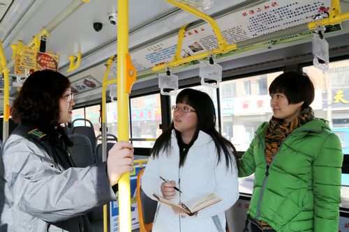 調(diào)研過程中,劉部長(zhǎng)聽取了總公司團(tuán)委書記付昱關(guān)于打造“公交志愿服務(wù)”品牌車組的工作情況匯報(bào)。在來到26路周麗媛車組時(shí),劉部長(zhǎng)詳細(xì)詢問了26路紅絲帶活動(dòng)的進(jìn)展情況、乘客反饋等。劉部長(zhǎng)先后乘坐了2路全國(guó)勞模鄭玉曉、46路綠色先鋒號(hào)汪亞娟駕駛的公交車,在看到車上設(shè)置的青年志愿者服務(wù)便民箱后,給予了高度評(píng)價(jià),她強(qiáng)調(diào),青年志愿者服務(wù)要落地、接地氣,從自己的本職工作做起,要著眼于細(xì)節(jié),真真正正做到公交優(yōu)秀,要結(jié)合公交青年工作實(shí)際,努力培養(yǎng)和造就一支奉獻(xiàn)、友愛、互助、進(jìn)步的青工隊(duì)伍??偣緢F(tuán)委也將以點(diǎn)帶面,在全公司范圍內(nèi)繼續(xù)深入開展“青年志愿者服務(wù)崗”活動(dòng),選樹典型,提高青年職工的奉獻(xiàn)理念和服務(wù)水平。